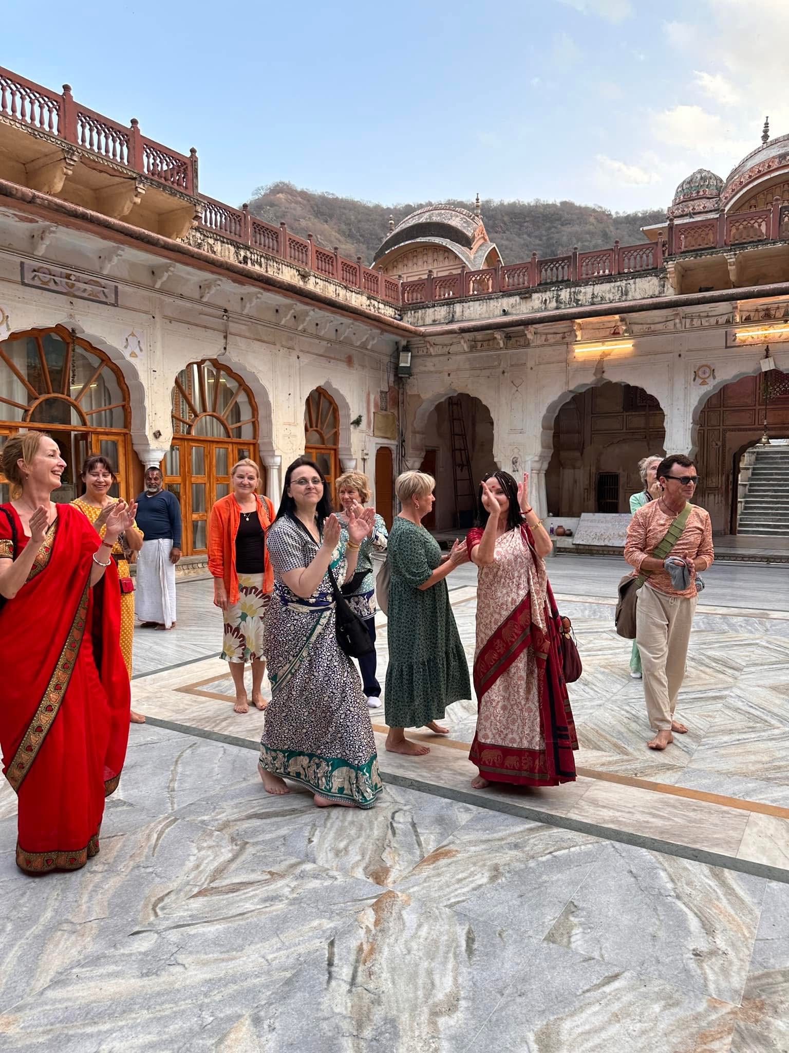 Для кого- то Индия распахнула свои объятия впервые. Я же, со сладостью наблюдаю за тем, как происходит это знакомство… и то, что чувствуют точно все – это открытость, чистосердечие, иногда детская наивность людей. Это неописуемо… И да, каждый видит то, что привёз с собой… что видим мы – искрящиеся глаза, уважение к тебе, как гостю, Guest like a God.., неописуемое ощущение свободы, доброжелательных, улыбающихся людей, которые говорят тебе – о, ты классно выглядишь в сари сделаем селфи ?😃  А наш гид в Джайпуре – Мукеш, начинает свой день с благословления Божеств .. его друзья присылают фото Божеств  со всей Индии, со всех храмов. Он желает всем дорого утра, пишет Намасте, друг, и только так начинает свой рабочий день. )) 👌👌